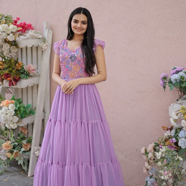 Premium Designer Gown Faux Georgette With Rich Floral Print work